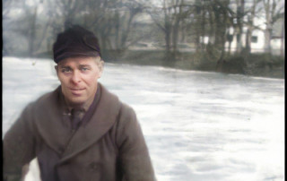 Once during that cold winter when there was snow & ice a plenty, Uncle Calvin took us to school in a one-horse sleigh. Another occasion at Thanksgiving we drove to Uncle Eli and Aunt Lizzie in the surrey with fringe on the top. During that winter Dad came to visit us at Christmas. I seemed so overjoyed to have him there, that I hardly left his lap while he was there.